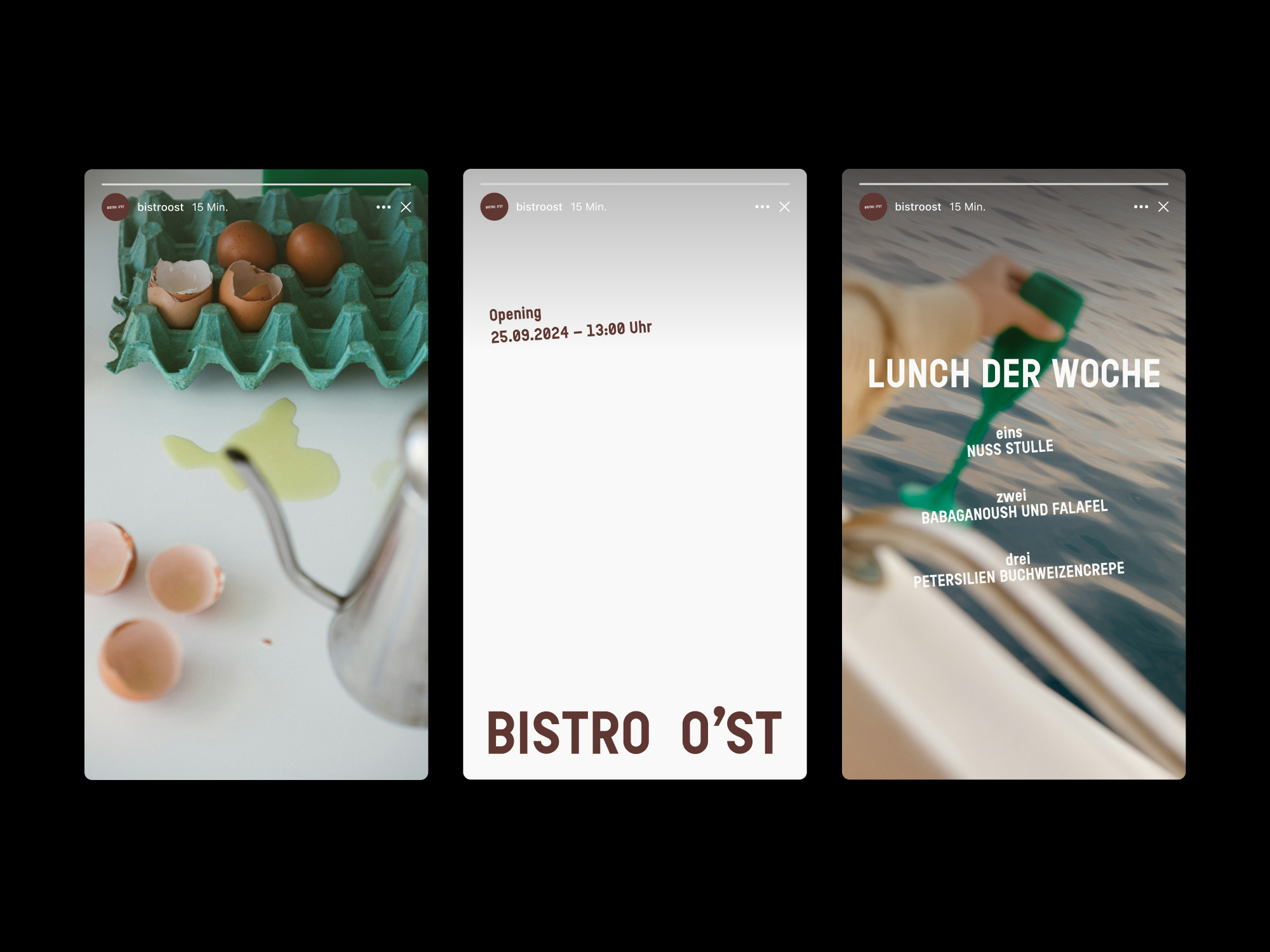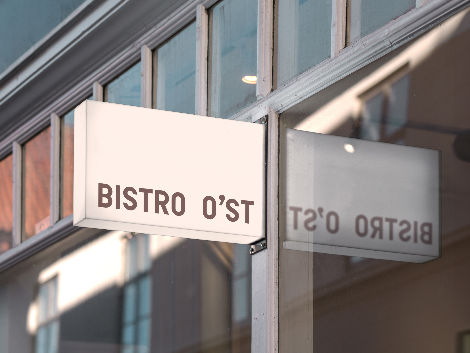 The typography-based branding for BISTRO O'ST is characterised by the use of a narrow but eye-catching font. The images are casual, spontaneous and meant to reflect the mood of the place: The pleasure of good food and a place to enjoy it together. The apostrophe from the logo works as a bold key visual for some touchpoints.