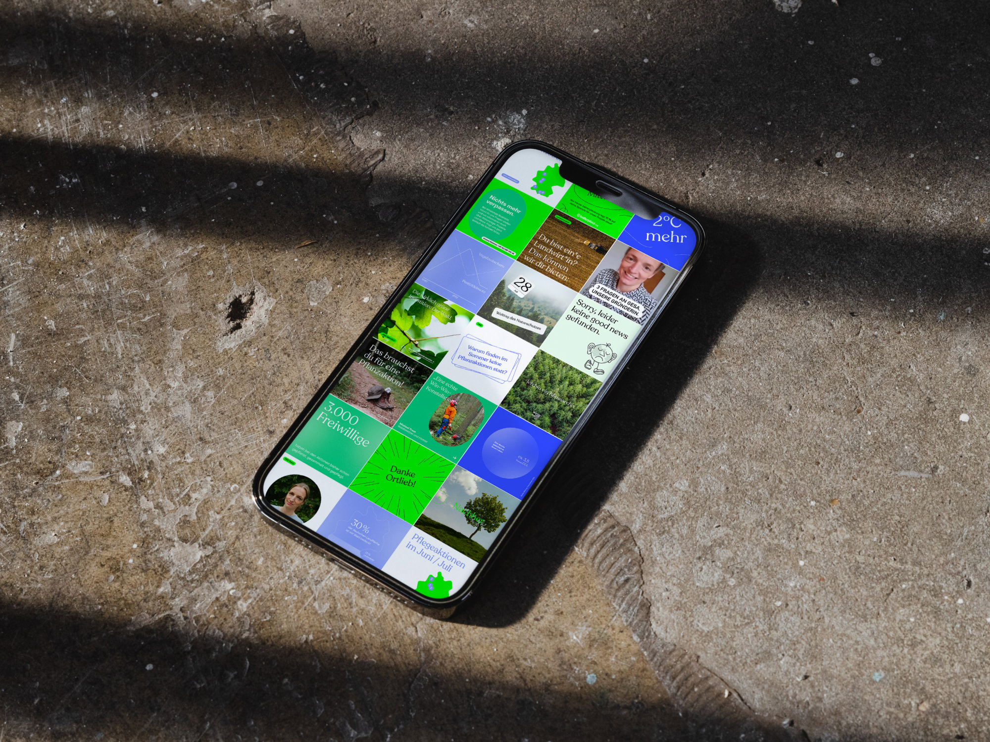 Deutschland forstet auf is a platform that connects foresters, forest owners and farmers with volunteers and companies. In course of a redesign of the social network Instagram, a new visual and content-wise appearance was created. It contains a mixture of general information on the topic of forests and climate protection, information about DFA's fields of work, and animations to encourage commitment. Using accentuated colors and an exciting mix of fonts helps the Instagram account to look fresh and contemporary.
