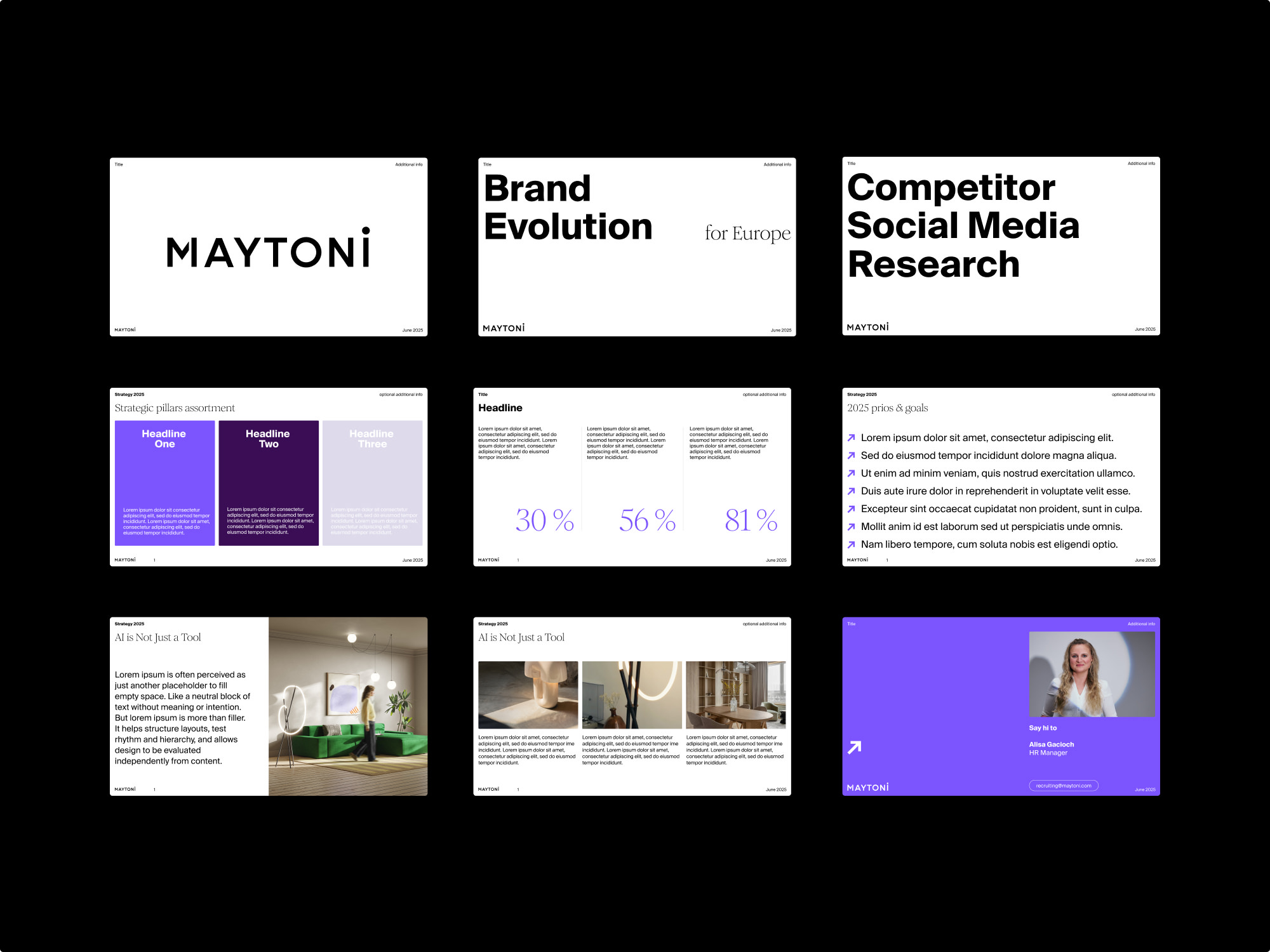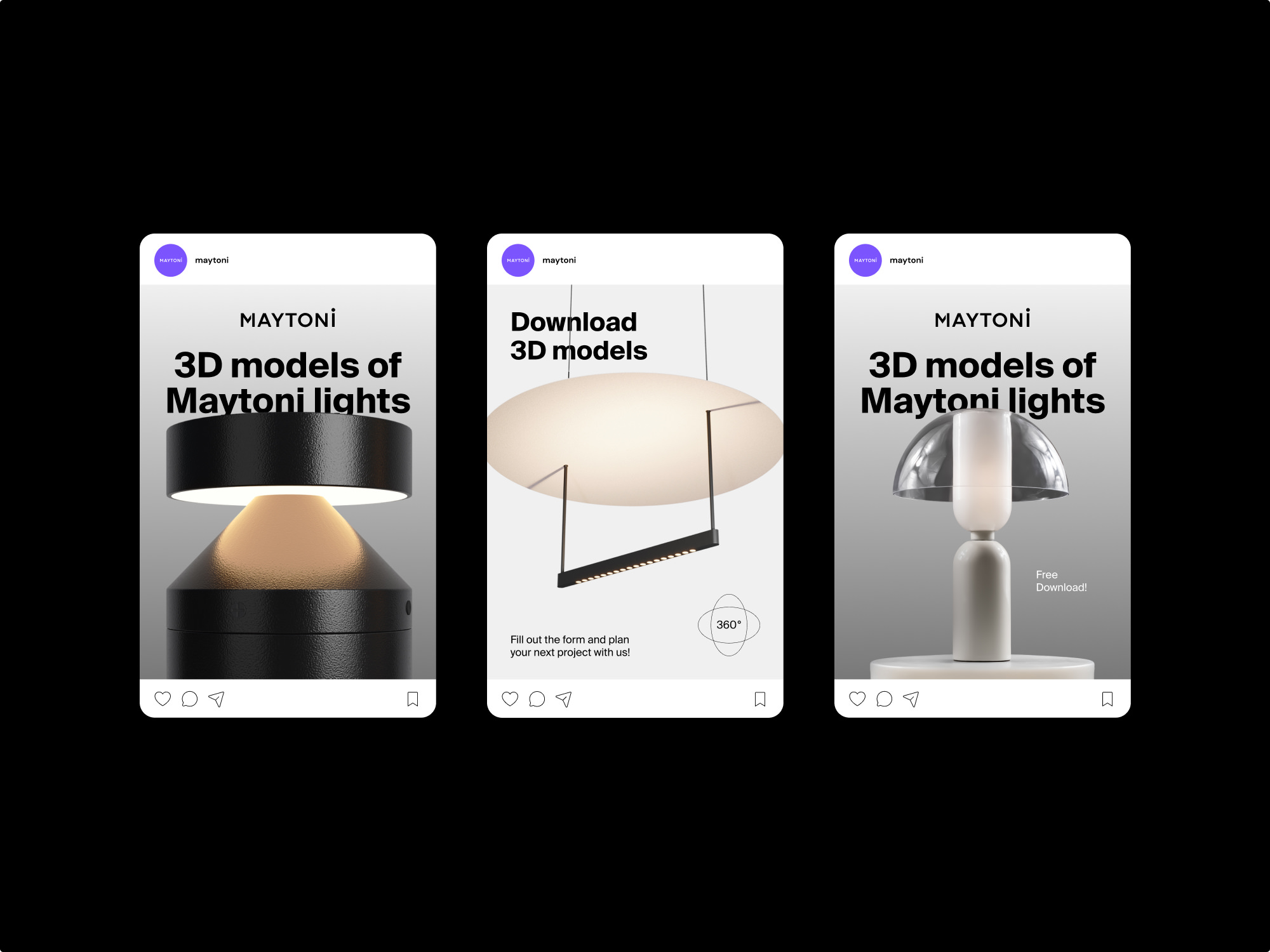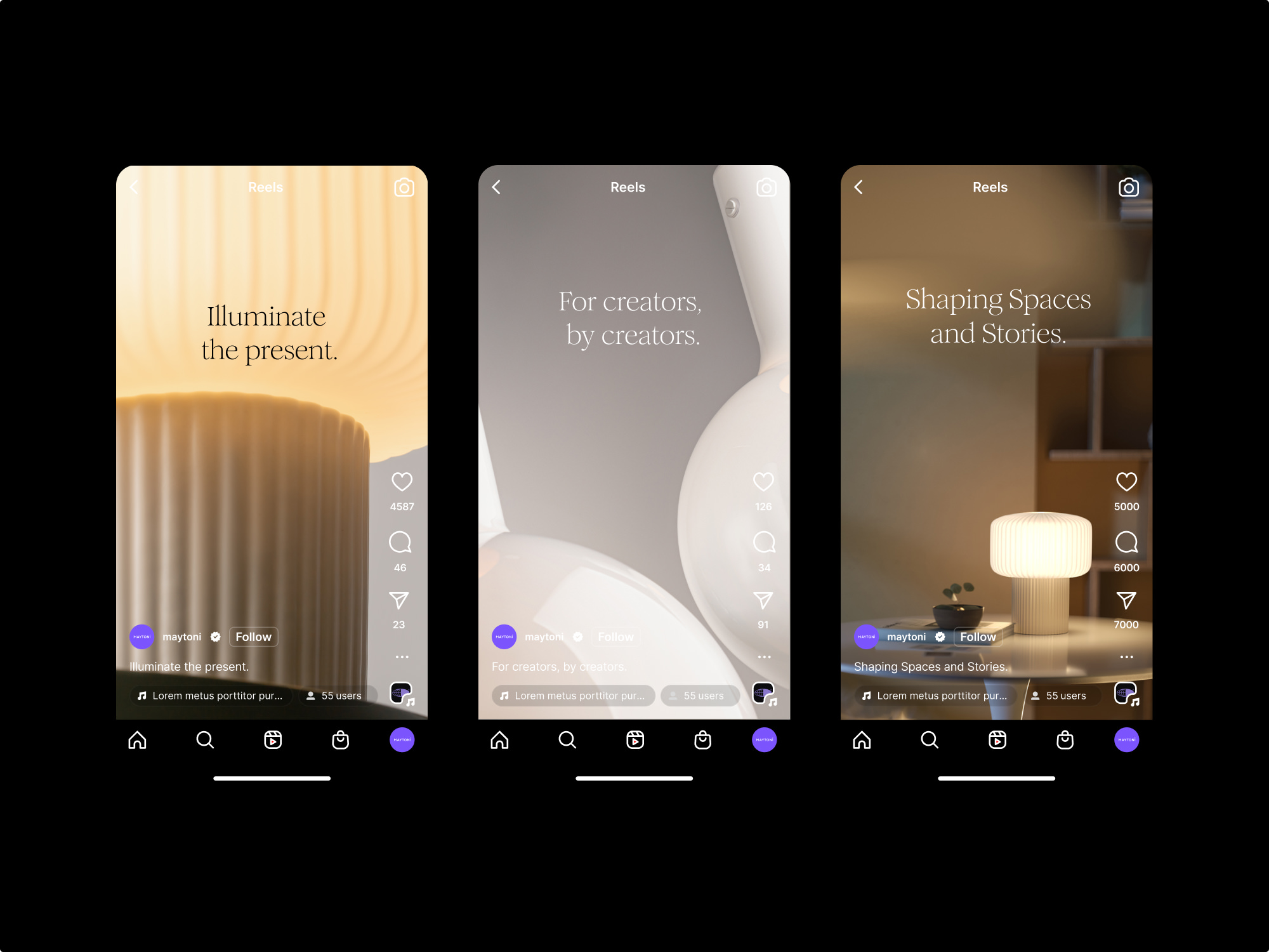 Freelance Support während der strategischen Neuausrichtung und des Rebranding Prozesses von Maytoni – einer Interior Brand für Leuchten aus Münster. Ausgehend von der neu definierten Markenessenz und dem Claim „Shaping Spaces and Stories“ entstand eine Evolution des Corporate Design. Kernelemente sind ein neues typografisches Erscheinungsbild, ein überarbeitetes Farbsystem für die Zuordnung der Lampen-Kategorien sowie eine neu gedachte Bildwelt. Die Zusammenarbeit bestand neben der grafischen Umsetzung von diversen Toucpoints in Bereichen wie klassische Geschäftsausstattung, Editorial Design, Retail, Social Media auch aus Beratung bei Themen wie Produktentwicklung, Kollaborationen, Content Produktion sowie Packaging.